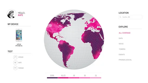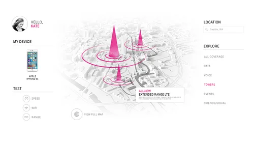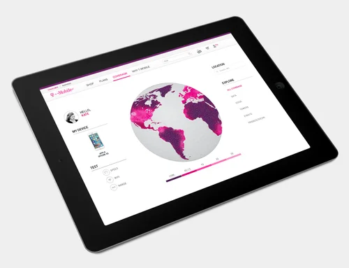 While working at Razorfish I was asked to explore some visual and UI concepts around new ways to showcase coverage maps on T-Mobile.com.